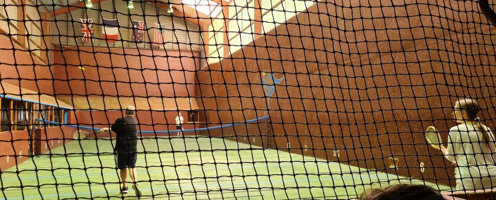 In the Dutch Masters group, Cath Faull and Ian Chambers were the team to beat, playing some great tennis to win all three of their group matches, resisting strong pressure from all the other evenly matched teams, who all picked up a set each. A highlight match was the morning’s game between Cath & Chambo and Cora Trevarthan and Pat Sunter in front of a full dedans of spectators, where in the early stages several shots into the dedans and winning gallery were traded, before Cath & Ian’s classy tennis saw them clinch it 7-3.