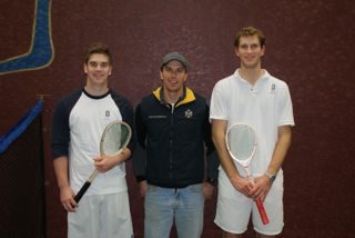 Amazingly Brett’s reengineering of the drains is a success and next day on a dry court all the matches in both tournaments are completed. In the scratch junior singles Michael Williams is at unbackable odds and comfortably wins from a gallant Sam McDonald. As usual in the handicap event it is a different story. In the first group Sam reverses the results with Michael and narrowly wins from Will Hoskin. In the second group Tom Parker wins all his matches with newcomer Will Cole a credible second. The final sees Tom take out the handicap title fairly comfortably.
