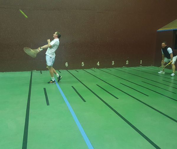 UK Jesters team leader, Robert Dolman – for many years Wales’s #1 squash player – kindly donated a special auction item: a game of tennis on the hallowed lawns of Wimbledon. His other off-court contribution featured his singing of a Jester’s ditty about balls! Some say it was a close run thing that Cath Collins didn’t return fire with the Wanderers theme song. Is singing a new tradition for the Festival?
