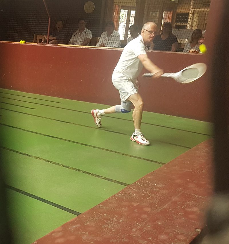 Bragging rights in the Baker household goes to young Mitch (who partnered with Ian Chambers) beat his father Nathan (and Robin McAllen) when dad Nathan plopped one into the net on the 6th match ball.   And still managed a smile: what a guy.