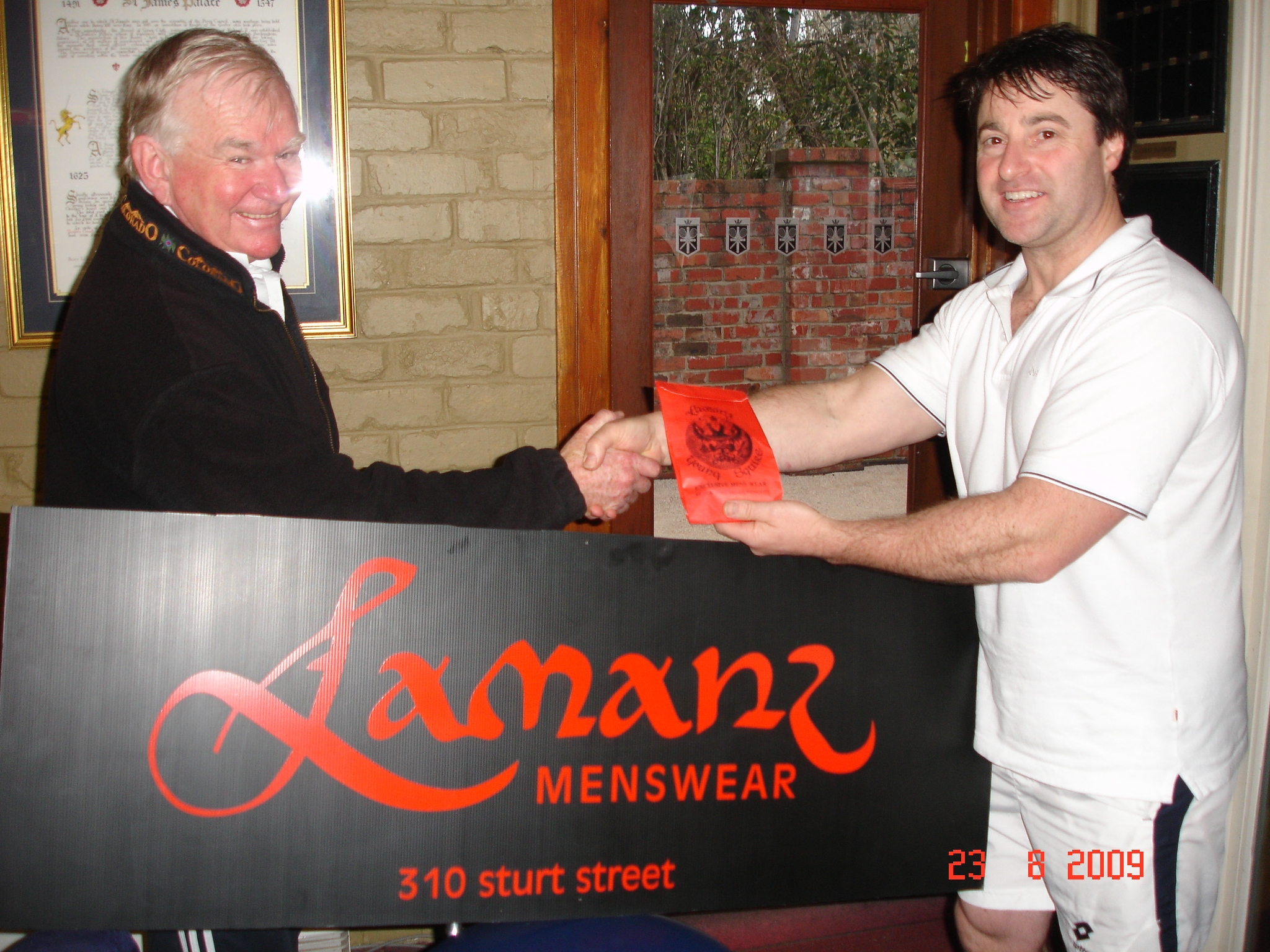 The elite group … featuring respectively the notorious sponsor, a computer whiz, a Russian whiz and an elderly pensioner. Ian Chambers, grateful there were no women or Frenchmen present, hammered the ball at his fellow whizzes. Rod however took him to the wire and in the end there was only one game in it. Presenting himself with his own prize Chambers said he planned to play in all four groups next year.