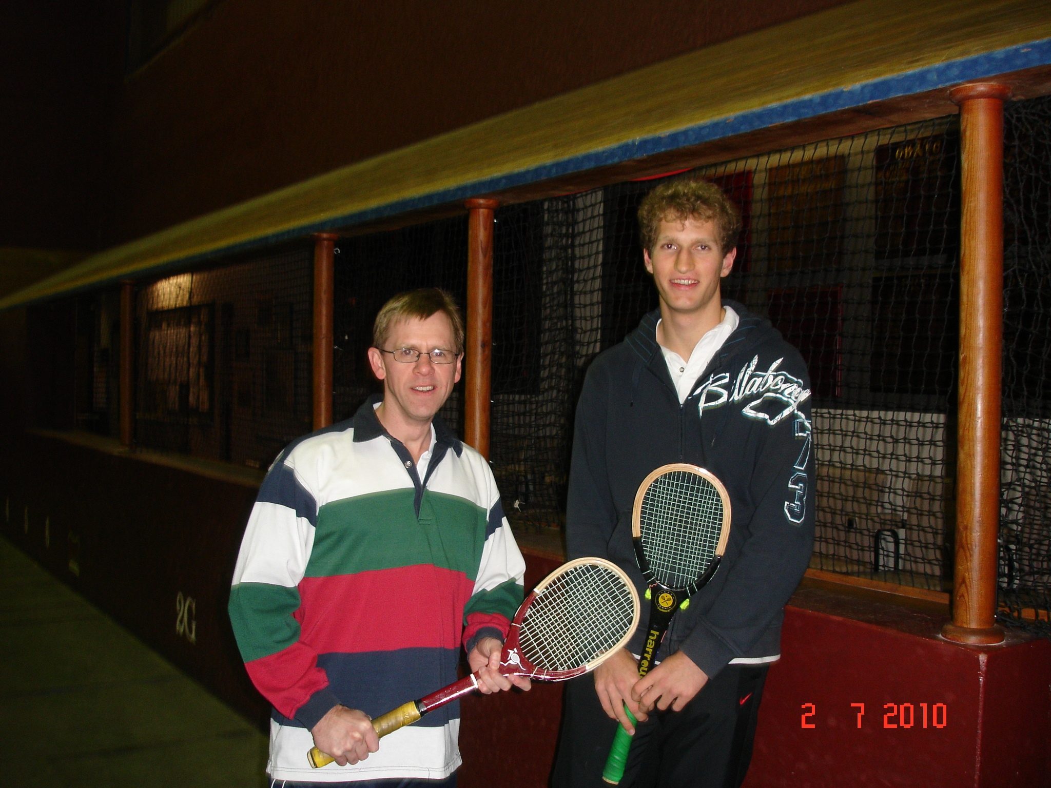 Friday night Sam breaks his racquet and still wins all his matches in his section. You’d expect caring souls like Tim and Rod to comfort Ian Chambers after he loses from 7-5 up against Sam … but they beat him up as well … Ian is traumatised. In section B Jane Bradfield is almost traumatised as she drives all the way from Romsey to find that everyone but Rohan has pulled out at the last minute. David Ward kindly agrees to help out and Jane’s sanity is saved. In section C Tim Lamont plays in his first tournament and does well with a win against Alastair but the wily Jon Dugdale is undefeatable. More trauma in the final group when Greg Rowe breaks down leaving a trio to compete. Poor old Rob Jolly with that dicky hip now has to be on court most of the time … and against madmen like Bruce and Bill. He wins but I bet he feels like Ben Cousins after a few sleeping pills the next morning.