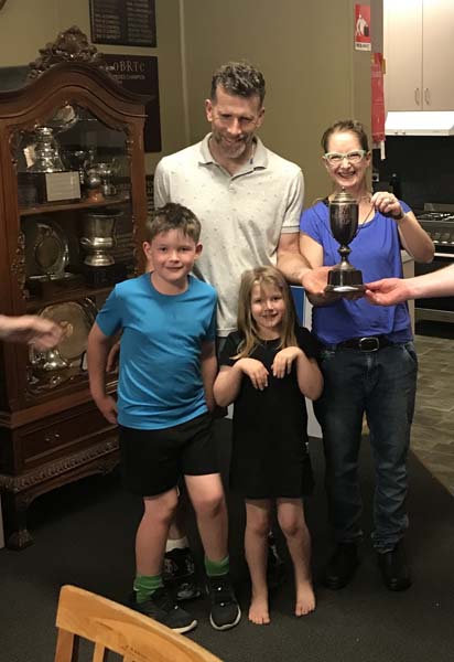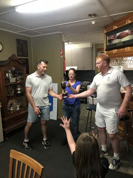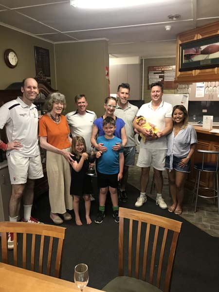 After a number of closely fought first to 8 games matches (several matches ended up at 8/6 or thereabouts), at the end of the 8 rounds 4 players emerged as contenders for the final and made up the following pairings: Julian Sunter and Cath Faull versus Patrick Sunter and Tom Spring. The final proved to be as nail bitting as the previous rounds, with Julian and Cath ultimately claiming the Cup Title with a 8/6 match win. A lovely family celebration followed and the promise to a merrier and bigger return same time next year!